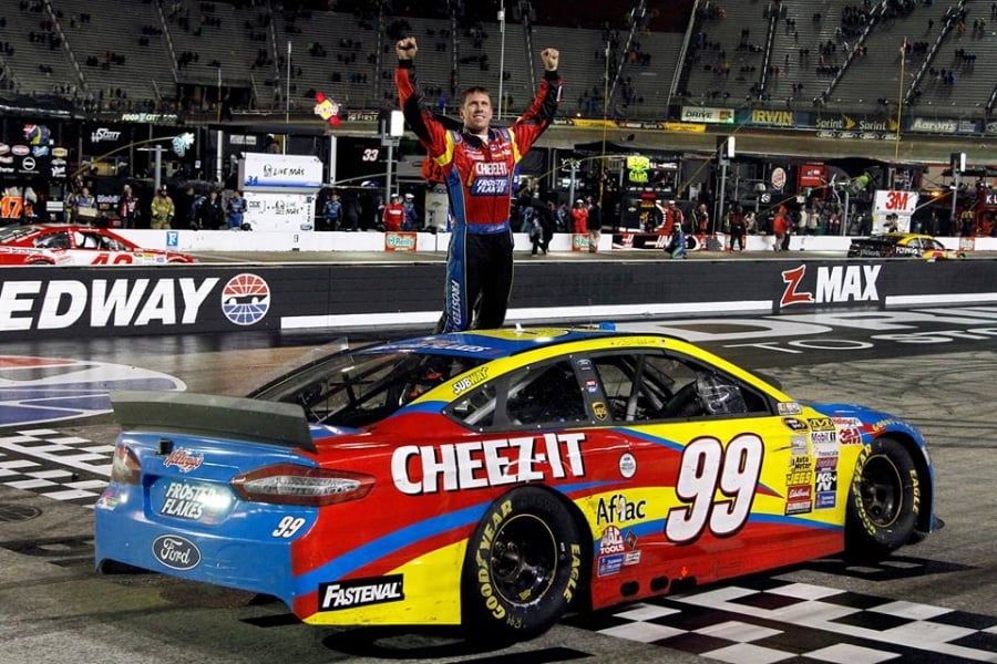 Carl Edwards tops the Bristol cup results sheet after a rain filled race at Bristol Motor Speedway. The race saw a several hour delay getting started. However, when the green dropped it was followed by 100+ laps with rain again bringing the show to a screeching halt.