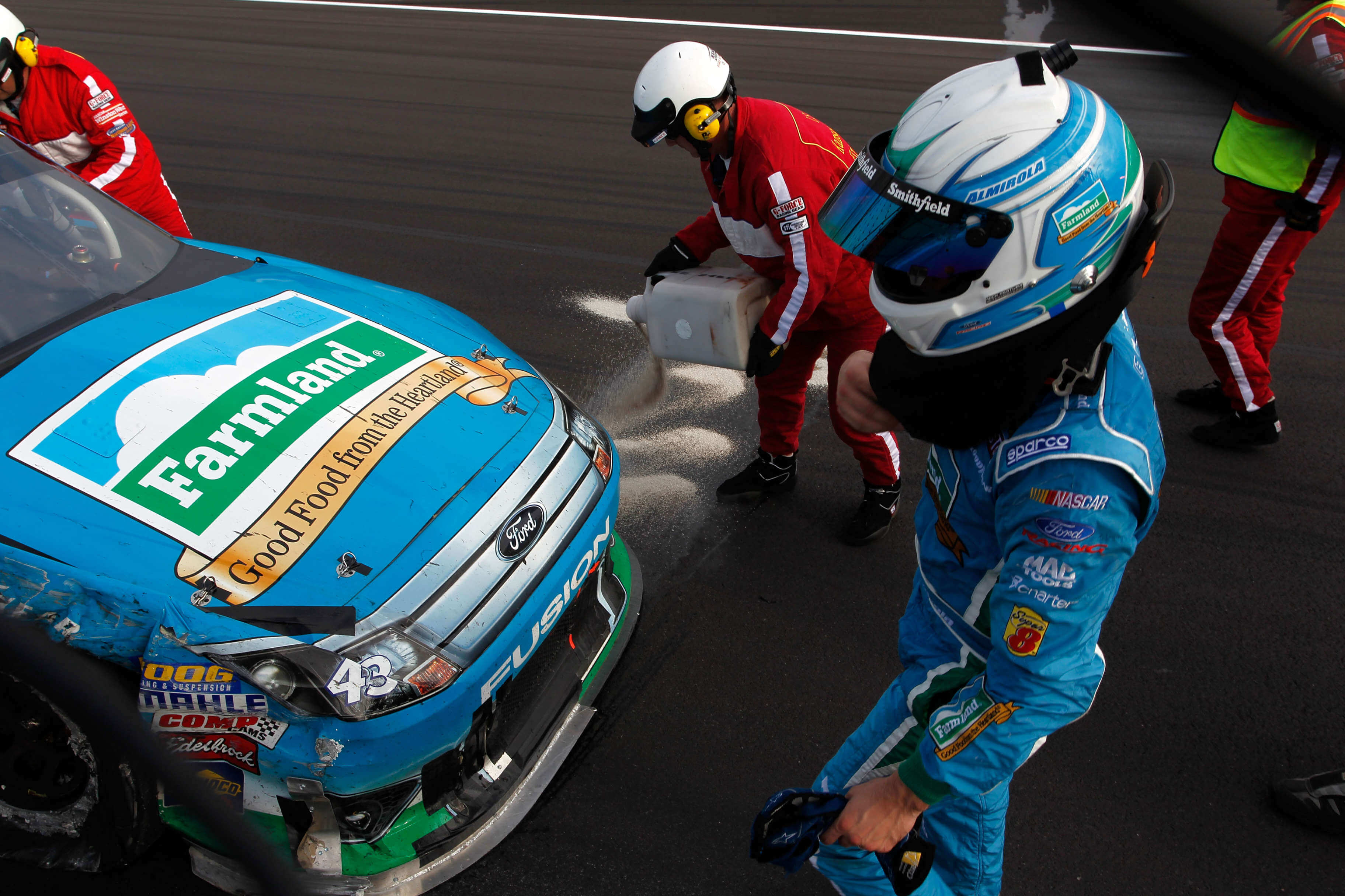 Oil was spread all over the race track. Almirola came into the scene with no way to turn and no way to stop. Instead, he slid through the oil and collided with both Patrick and Keselowski.