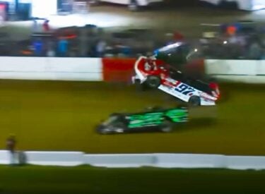 Both dirt late model drivers nearly flipped in the wild crash at Batesville Motor Speedway after a slider gone wrong