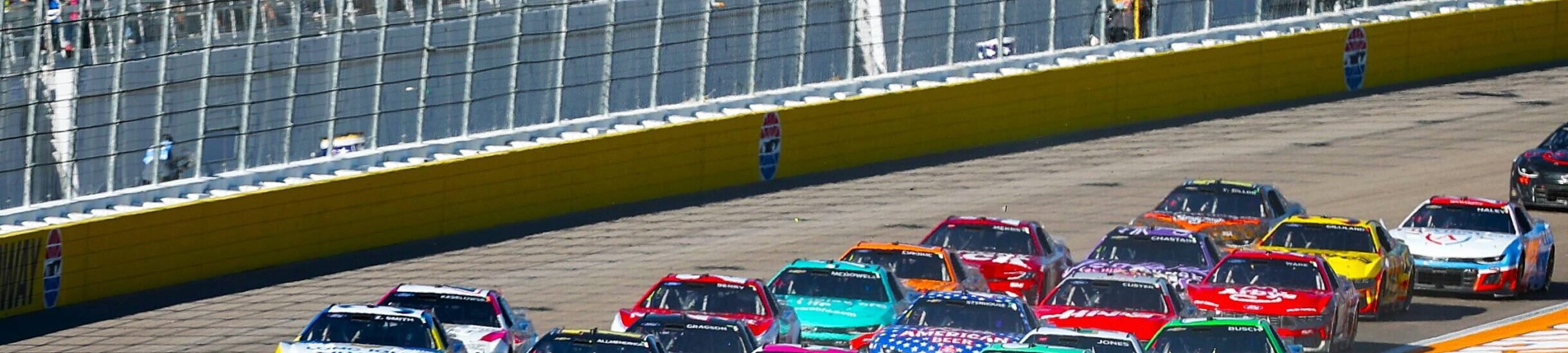 Green with 3 to go in stage one, Byron is clear before turn one with a shove from Chase Briscoe.