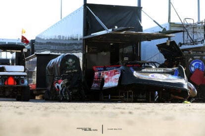 He only briefly used the hauler. Bloomquist later told me that there were issues with weight as he crossed state lines. A primary car, backup car and another full car in parts alone, on-top of all the custom elements built into the trailer resulted in it being too heavy.