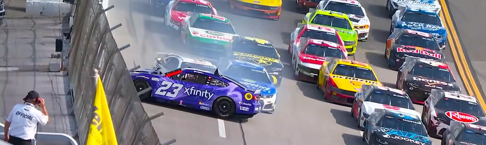 Cars involved: Austin Cindric; Austin Dillon; Kyle Larson; Brad Keselowski; Daniel Suarez; Kyle Busch; Denny Hamlin; Ryan Blaney; Chase Briscoe; Josh Berry; Joey Logano; Bubba Wallace; William Byron; Jesse Love; Cole Custer; John Hunter Nemechek; Erik Jones; Joey Gase; Tyler Reddick; Cody Ware; Ty Gibbs; Chad Finchum; Michael McDowell; Carson Hocevar; Connor Zilisch; Shane van Gisbergen